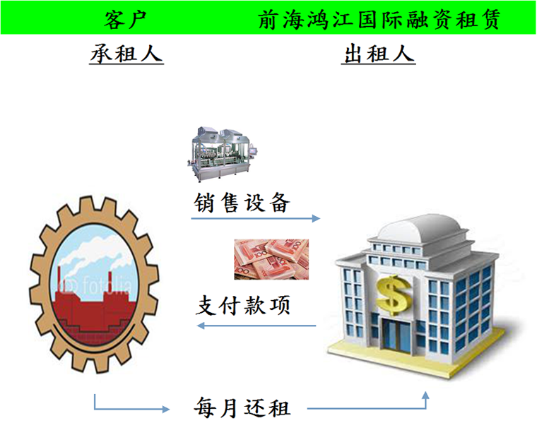 承租企业将自有租赁物品出卖经前海鸿江,前海鸿江取得所有权后返租给承租企业使用,承租企业再以分期付款的方式支付租金,支付完毕后转移该物品所有权。